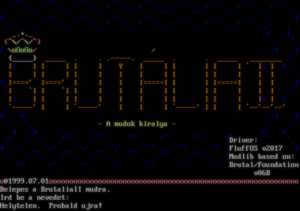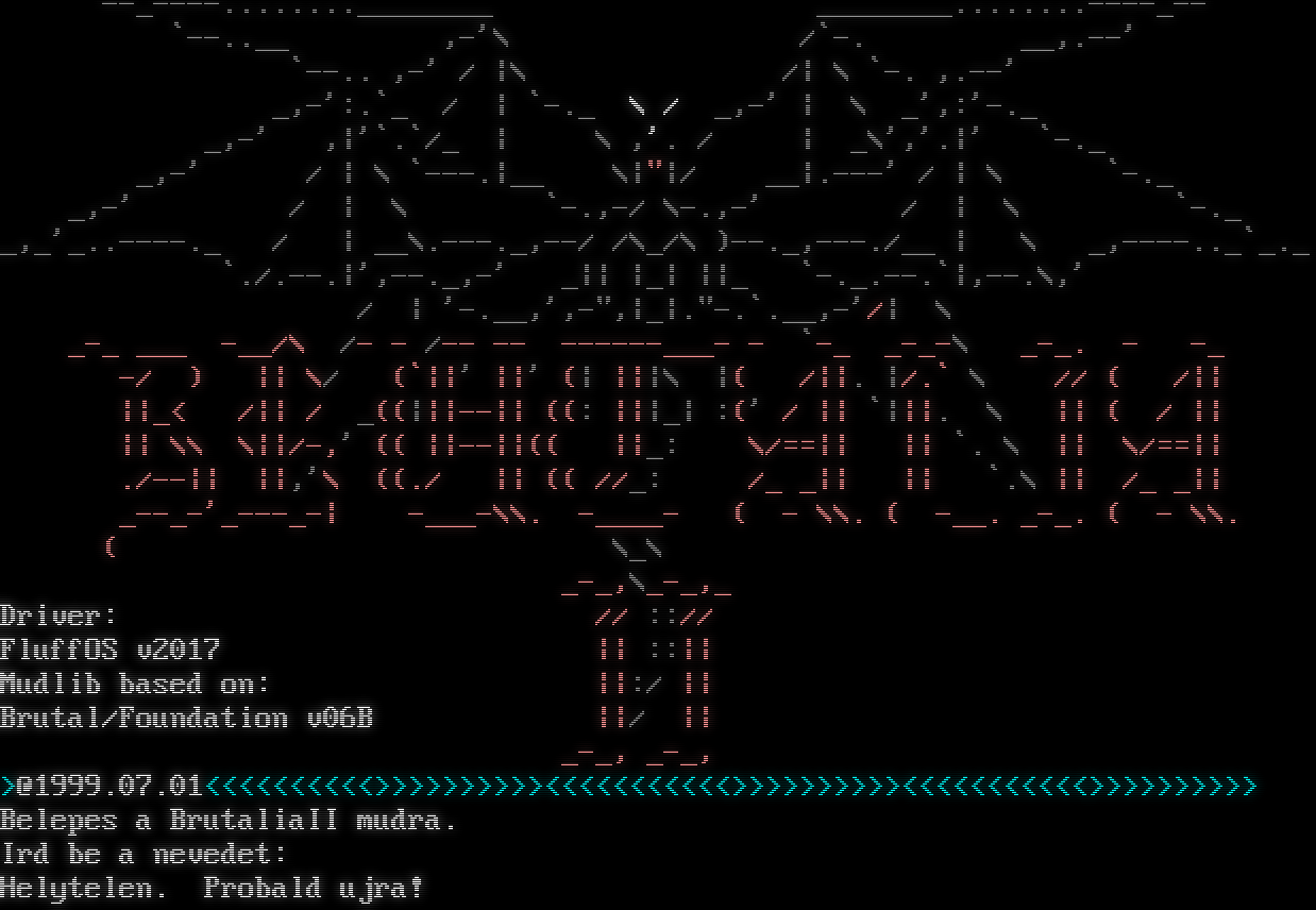 -​-_----........________ _​_______........----_-- \`-​-..__ ,-'\\ /\`-. __,.--' \`-​-.. ,-' / \|\\ /\| \\ \`-. ,.--' _,-':.\`_ / \| \`-._ \\ / _,-' \| \\ _',:'-._ _,-' ,\|'\`.\`/_ \| \\ ,'. / \| _\\','.\|' \`-._ _,-' / \| \\ \`-​--.\|__ \\\|"\|/ __\|.​---' / \| \\ \`-._ _,-' / \| \\ \`-.,-/ \\-.,-' / \| \\ \`-._ _,_'_​..----._ / \| __\\.​---._,--/ /\\_/\\ )-​-._,-​--./__ \| \\ _,-​---.._\`_._ \`./.​--.\|',-​-._,-' _\|\| \|_\| \|\|_ \`-​._.--.\`\|,--.\\,' / \| '-​.__,',-",\|_\|.​"-.\`.__,-'/\| \\ _-_ ___ -__/\\ /- - /-- -- -​-----___- - \`-_ _​-_-\\ _​-_. - -_ -/ ) \|\| \\/ (\`\|\|' \|\|' (\| \|\|\|\\ \|( /\|\|. \|/.\` \\ // ( /\|\| \|\|_< /\|\| / _((\|\|\|--\|\| ((: \|\|\|_\| :(' / \|\| \`\|\|\|. \\ \|\| ( / \|\| \|\| \\\\ \\\|\|/-,' (( \|\|--\|\|(( \|\|_: \\/==\|\| \|\| \`. \\ \|\| \\/==\|\| ./--\|\| \|\|,'\\ ((./ \|\| (( //_: /_ _\|\| \|\| \`.\\ \|\| /_ _\|\| _​--_-'_​---_-\| -​___-\\\\. -​____- ( - \\\\. ( -​__. _​-_. ( - \\\\. ( \\_\\ _-_,\\_-_,_ Driver: // ::// FluffOS v2017 \|\| ::\|\| Mudlib based on: \|\|:/ \|\| Brutal/Foundation v06B \|\|/ \|\| _-_, _-_, >@1999.07.01<<<<<<<<<<>>>>>>>>>><<<<<<<<<<<>>>>>>>>>><<<<<<<<<<<>>>>>>>>>> Belepes a BrutaliaII mudra. Ird be a nevedet: Helytelen. Probald ujra!