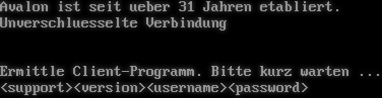 Avalon ist seit ueber 31 Jahren etabliert. Unverschluesselte Verbindung Ermittle Client-Programm. Bitte kurz warten ... <support><version><username><password><!-- Diese Zeile ist ein Kommentar --><!-- Dies sind die globalen MXP Definitionen fuer Avalon, nur diese --><!-- sind gueltig und sollten verwendet werden. --><!-- siehe /sys/mxp.h --><!ELEMENT exit '<send &exitdir; hint=&exithint; expire=ROOM>' ATT='exitdir=&text; exithint=&text;'><!ELEMENT item '<send &itemcmd; hint=&itemhint; expire=&itemexpire;>' ATT='itemcmd=&text; itemhint=&text; itemexpire=EMPTY'><!ELEMENT player '<send &playercmd; hint=&playerhint; expire=&playerexpire;>' ATT='playercmd=&text; playerhint=&text; playerexpire=EMPTY'><!ELEMENT living '<send &livingcmd; hint=&livinghint; expire=&livingexpire;>' ATT='livingcmd=&text; livinghint=&text; livingexpire=EMPTY'><!ELEMENT buy '<send &buycmd; hint=&buyhint; expire=ROOM>' ATT='buycmd=&text; buyhint=&text;'><!ELEMENT game '<send &gamecmd; hint=&gamehint; expire=ROOM>' ATT='gamecmd=&text; gamehint=&text;'> ,---, ,--, ' .' \\ ,--.'\| / ; '. \| \| : ,-​--. ,---, : : \\ .​---. : : ' ' ,'\\ ,-​+-. / \| : \| /\\ \\ /. ./\| ,-​-.--. \| ' \| / / \| ,--.'\|' \| \| : ' ;. : .-' . ' \| / \\ ' \| \| . ; ,. :\| \| ,"' \| \| \| ;/ \\ \\/___/ \\: \| .​--. .-. \|\| \| : ' \| \|: :\| \| / \| \| ' : \| \\ \\ ,'. \\ ' . \\__\\/: . .' : \|__' \| .; :\| \| \| \| \| \| \| ' '--' \\ \\ ' ," .​--.; \|\| \| '.'\| : \|\| \| \| \|/ \| : : \\ \\ / / ,. \|; : ;\\ \\ / \| \| \|--' \| \| ,' \\ \\ \|; : .' \\ , / \`-​---' \| \|/ \`--'' '-​--" \| , .-./---\`-' '---' \`--\`---' Avalon! Eine Welt, in der alles moeglich und nichts unmoeglich ist. "Endlich wieder hier", denkst Du Dir und verlierst auch schon Dein Bewusstsein. Du wachst auf und ein Adliger steht vor Dir: Wer bist Du, Fremder? Sage mir Deinen Namen. Wenn Du verwirrt bist oder Deinen Namen nicht mehr weisst, so nenne Dich einfach "gast" oder rufe um "hilfe"! Tippe "neu", falls wir uns noch nie gesehen haben. Du antwortest: