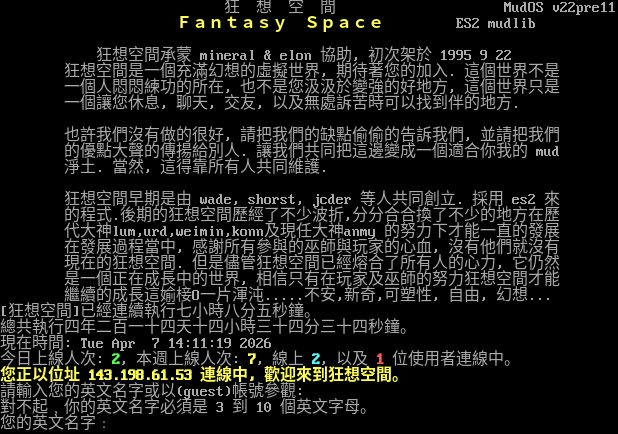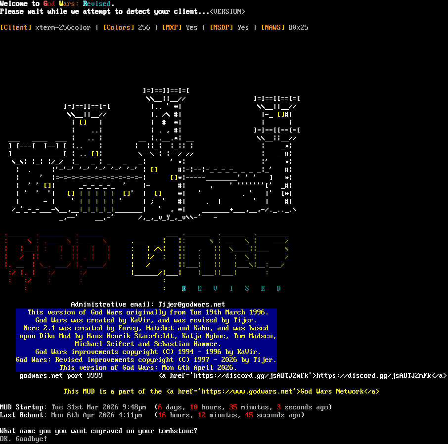 🇺🇸 game.theafterlifemud.com | Encoding: ascii