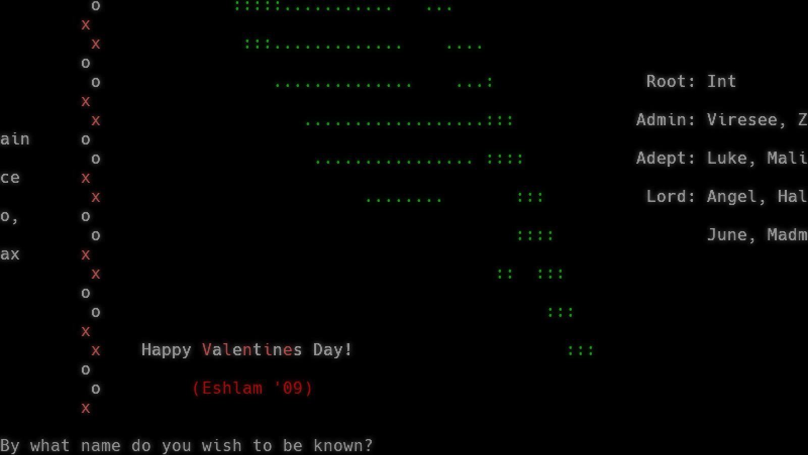 x OOOOOOOOOOOOO o o OOOOOOOOOOOOOO..OOO x x OOOOO...ooooooooooo..OO o o OOO.​...OO.​......OOO..OO ,88O8OO. ,OO8O88. x x OO.OOOO..OOOOOOOOO...OO ,888O8OOoOo.oOoOO8O888. o o OOO...OOOOOOO.​....OOOO ,888OOoooo:o:o:ooooOO888. x x OOOOOO.​......OOOO...OO 888OOoOoo:::::::ooOoOO888 o o OOO..OOOOOOO...oo..oo 88OOoo:o.: Lost :o:ooOO88 x x OOo.​..........oo...o \`88OOoo:: Wishes :ooOO88' o o oo.​.........oo...oo \`OOoo:o.:.. ..:.o:ooOO' x x ooo.​....o..OO.​...o "OoOoo:::::::ooOoO" o o oOOOOOOOOOO..OOO "oooo:o:o:oooo" x x ooooo "OoOoOoOoO" o o :: "OOOOO" x x ... "8" o o ... x x :::.​........ .​....: o o :::::.​.......... ... x x :::.​............ .​... o o .​............. ...: Root: Int x x .​.................::: Admin: Viresee, Zain o o .​............... :::: Adept: Luke, Malice x x .​....... ::: Lord: Angel, Halo, o o :::: June, Madmax x x :: ::: o o ::: x x Happy Valentines Day! ::: o o (Eshlam '09) x By what name do you wish to be known?