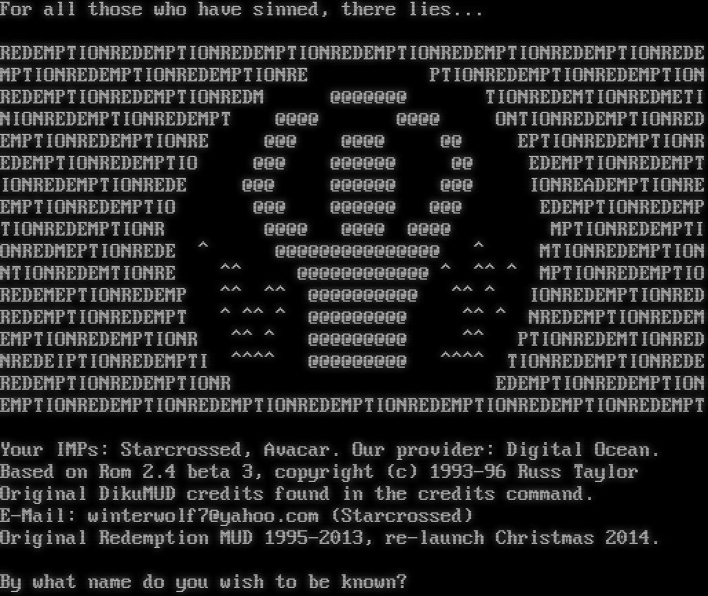 For all those who have sinned, there lies... REDEMPTIONREDEMPTIONREDEMPTIONREDEMPTIONREDEMPTIONREDEMPTIONREDE MPTIONREDEMPTIONREDEMPTIONRE PTIONREDEMPTIONREDEMPTION REDEMPTIONREDEMPTIONREDM @@@@@@@ TIONREDEMTIONREDMETI NIONREDEMPTIONREDEMPT @@@@ @@@@ ONTIONREDEMPTIONRED EMPTIONREDEMPTIONRE @@@ @@@@ @@ EPTIONREDEMPTIONR EDEMPTIONREDEMPTIO @@@ @@@@@@ @@ EDEMPTIONREDEMPT IONREDEMPTIONREDE @@@ @@@@@@ @@@ IONREADEMPTIONRE EMPTIONREDEMPTIO @@@ @@@@@@ @@@ EDEMPTIONREDEMP TIONREDEMPTIONR @@@@ @@@@ @@@@ MPTIONREDEMPTI ONREDMEPTIONREDE ^ @@@@@@@@@@@@@@@ ^ MTIONREDEMPTION NTIONREDEMTIONRE ^^ @@@@@@@@@@@@ ^ ^^ ^ MPTIONREDEMPTIO REDEMEPTIONREDEMP ^^ ^^ @@@@@@@@@@ ^^ ^ IONREDEMPTIONRED REDEMPTIONREDEMPT ^ ^^ ^ @@@@@@@@@ ^^ ^ NREDEMPTIONREDEM EMPTIONREDEMPTIONR ^^ ^ @@@@@@@@@ ^^ PTIONREDEMTIONRED NREDEIPTIONREDEMPTI ^​^^^ @@@@@@@@@ ^​^^^ TIONREDEMPTIONREDE REDEMPTIONREDEMPTIONR EDEMPTIONREDEMPTION EMPTIONREDEMPTIONREDEMPTIONREDEMPTIONREDEMPTIONREDEMPTIONREDEMPT Your IMPs: Starcrossed, Avacar. Our provider: Digital Ocean. Based on Rom 2.4 beta 3, copyright (c) 1993-96 Russ Taylor Original DikuMUD credits found in the credits command. E-Mail: winterwolf7@yahoo.com (Starcrossed) Original Redemption MUD 1995-2013, re-launch Christmas 2014. By what name do you wish to be known?