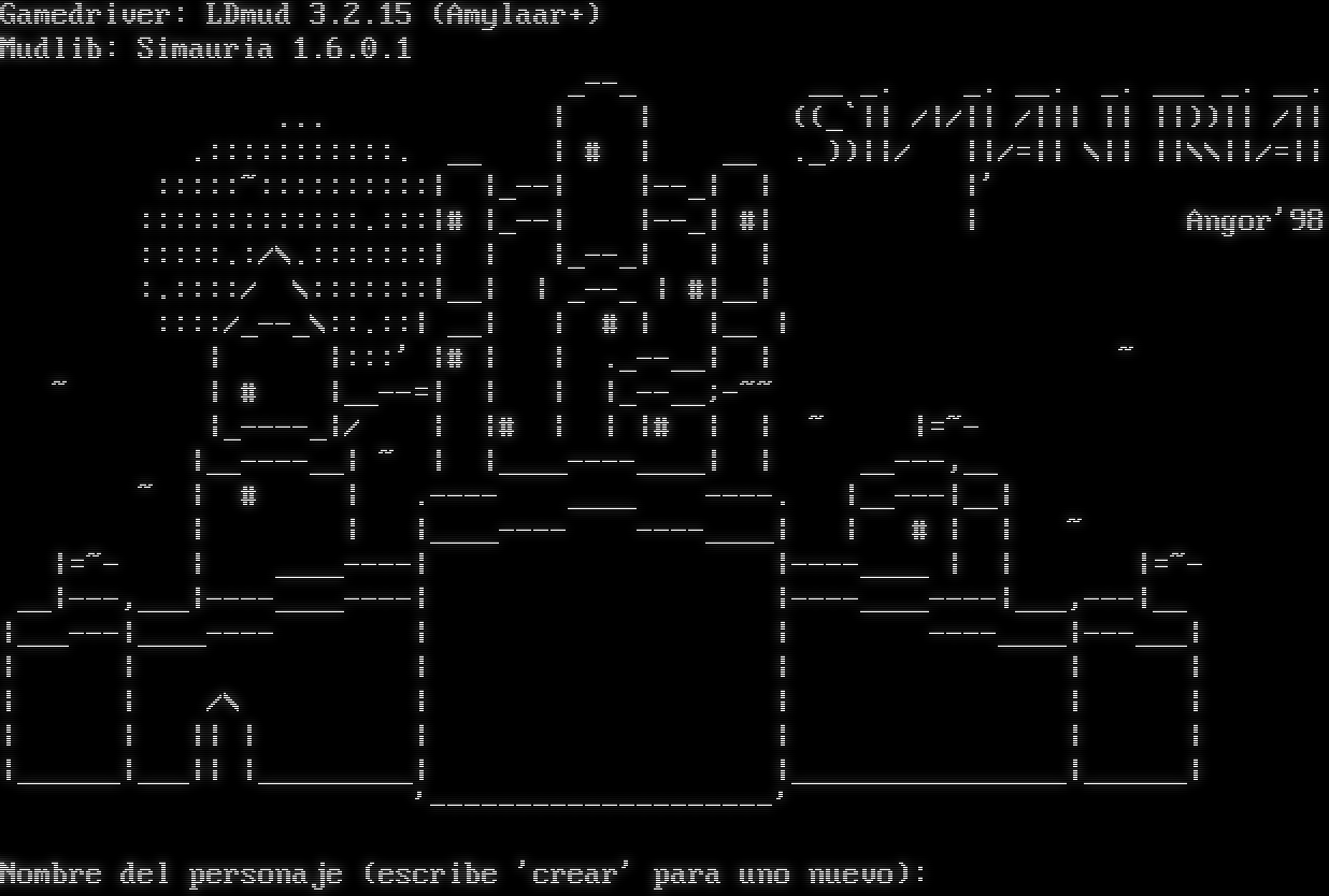 Gamedriver: LDmud 3.2.15 (Amylaar+) Mudlib: Simauria 1.6.0.1 _​--_ __ _. _. __. _. ___ _. __. ... \| \| ((_\`\|\| /\|/\|\| /\|\|\| \|\| \|\|))\|\| /\|\| .:::::::::::. __ \| # \| __ ._))\|\|/ \|\|/=\|\| \\\|\| \|\|\\\\\|\|/=\|\| :::::~::::::::::\| \|_--\| \|--_\| \| \|' :::::::::::::.:::\|# \|_--\| \|--_\| #\| \| Angor'98 :::::.:/\\.:::::::\| \| \|_​--_\| \| \| :.::::/ \\:::::::\|__\| \| _​--_ \| #\|__\| ::::/_​--_\\::.::\| __\| \| # \| \|__ \| \| \|:::' \|# \| \| .​_--__\| \| ~ ~ \| # \|_​_--=\| \| \| \|_​--__;-~~ \|_​----_\|/ \| \|# \| \| \|# \| \| ~ \|=~- \|_​_----__\| ~ \| \|_​___----____\| \| _​_---,__ ~ \| # \| .​---- _​___ -​---. \|_​_---\|__\| \| \| \|_​___---- -​---____\| \| # \| \| ~ \|=~- \| _​___----\| \|-​---____ \| \| \|=~- __\|---,___\|-​---____----\| \|-​---____----\|___,---\|__ \|_​__---\|_​___---- \| \| -​---____\|-​--___\| \| \| \| \| \| \| \| \| /\\ \| \| \| \| \| \| \|\| \| \| \| \| \| \|_​_____\|___\|\| \|_​________\| \|_​_______________\|_​_____\| '-​-------------------' Nombre del personaje (escribe 'crear' para uno nuevo):