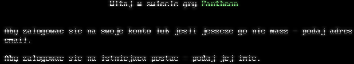 Witaj w swiecie gry Pantheon Aby zalogowac sie na swoje konto lub jesli jeszcze go nie masz - podaj adres email. Aby zalogowac sie na istniejaca postac - podaj jej imie.