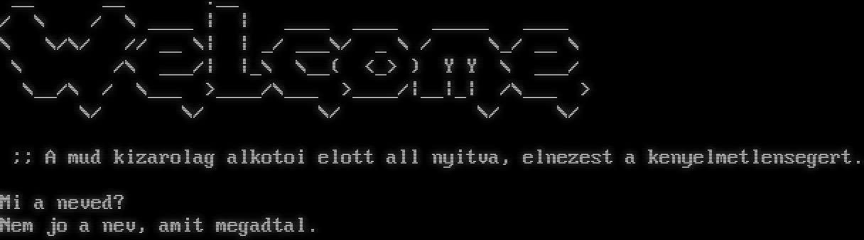 __ __ .__ / \\ / \\ _​___ \| \| _​___ _​___ _​____ _​___ \\ \\/\\/ // __ \\\| \| _/ ___\\/ _ \\ / \\_/ __ \\ \\ /\\ ___/\| \|_\\ \\__( <_> ) Y Y \\ ___/ \\__/\\ / \\___ >_​___/\\___ >_​___/\|__\|_\| /\\___ > \\/ \\/ \\/ \\/ \\/ ;; A mud kizarolag alkotoi elott all nyitva, elnezest a kenyelmetlensegert. Mi a neved? Nem jo a nev, amit megadtal.