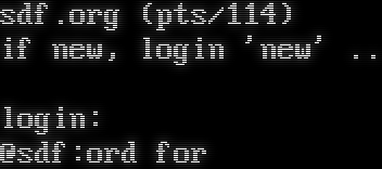 sdf.org (pts/114) if new, login 'new' .. login: Password for @sdf: