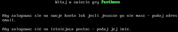 Witaj w swiecie gry Pantheon Aby zalogowac sie na swoje konto lub jesli jeszcze go nie masz - podaj adres email. Aby zalogowac sie na istniejaca postac - podaj jej imie.