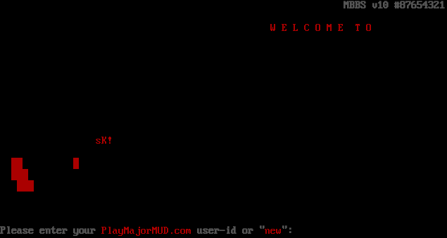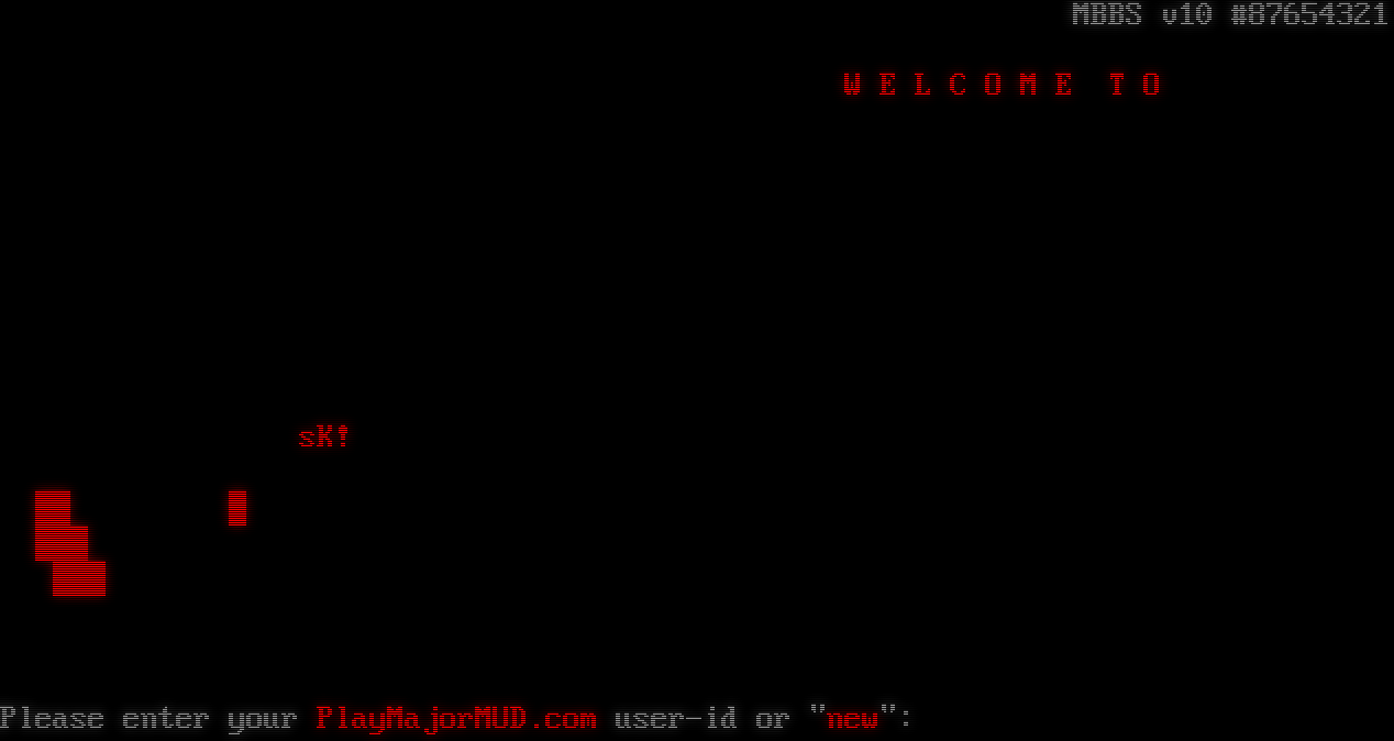 PlayMajorMUD...  MBBS v10 #87654321 W E L C O M E T O sK! Please enter your PlayMajorMUD.com user-id or "new":
