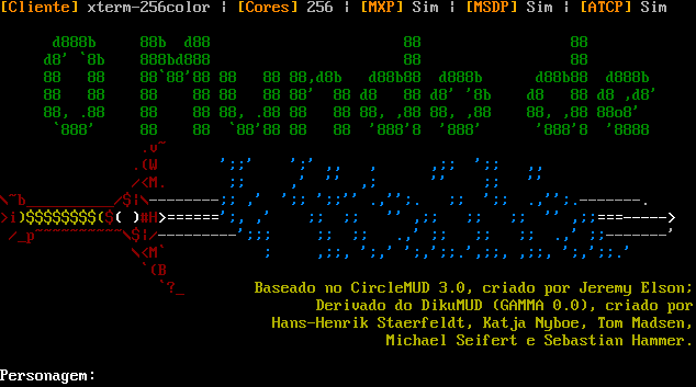 Tentando identificar o cliente. Aguarde... [Cliente] xterm-256color \| [Cores] 256 \| [MXP] Sim \| [MSDP] Sim \| [ATCP] Sim d888b 88b d88 88 88 d8' \`8b 888bd888 88 88 88 88 88\`88'88 88 88 88,d8b d88b88 d888b d88b88 d888b 88 88 88 88 88 88 88' 88 d8 88 d8' '8b d8 88 d8 ,d8' 88, .88 88 88 88, .88 88 88 88, ,88 88, ,88 88, ,88 88o8' \`888' 88 88 \`88'88 88 88 '888'8 '888' '888'8 '8888 .v~ .(W ';;' ';' ,, , ,;; ';; ,, /<M. ;; ,' '' ,; '' ;; '' \\~b_​_________/$\|\\-​-------;; ,' ';; ';;'' .,'';. ;; ';; .,'';.​-------. >i)$$$$$$$$($( )#H>=​=====';, ,' ;; ;; '' ,;; ;; ;; '' ,;;=​==-----> /_p~​~~~~~~~~~\\$\|/-​--------';;; ;; ;; .,' ;; ;; ;; .,' ;;-​------' \\<M\` ; ,;;, ';,' ';,';;.',;;, ,;;, ';,';;.' \`(B \`?_ Baseado no CircleMUD 3.0, criado por Jeremy Elson; Derivado do DikuMUD (GAMMA 0.0), criado por Hans-Henrik Staerfeldt, Katja Nyboe, Tom Madsen, Michael Seifert e Sebastian Hammer. Personagem: