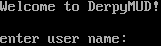 Welcome to DerpyMUD! enter user name: