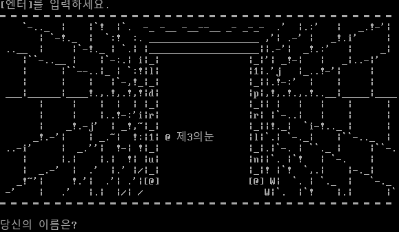 [엔터]를 입력하세요. ━━━━━━━━━━━━━━━━━━━━━━━━━━━━━━━━━━━━ \`-​.._ \| \|\`! \|\`. -_ -__ -​__--__ _- _​-_- .' \|.:' \| _.!-'\| \| \`-!._ \| \`:! :. _​___________________ ,'\| .-' \| _!.i' \| .​.__ \| \|\`-!._ \| \`.\| \|_​___________________\|\|.-'\| _!.:' \| _\| \|\`\`-​..__ \| \|\`-:.\| i\|_\| \|_\|'\| _!-\| \| _\|..-\|' \| \|\`\`-​-..\|_ \| \`:!\|l\| \|1\|.'j \|_..!-'\| \| \| \| \| \|\`-,!_\|_\| \|_\|\|.!-:' \| \| \| ___\|_​_____\|_​___!.,.!,.!,!\|d\| \|p\|,!,.!.,.!.​.__\|_​____\|_​___ \| \| \| \| \| \|_\| \|_\|\| \| \| \| \| \| \| \| \|..!-:'i\|r\| \|r\| \|\`-..\| \| \| \| \| _!.-j' \| _!,~\|_\| \|_\|\|!._\| \`i-!.._ \| \| _!.-'\| \| _.~\| !:\|1\| @ 제3의눈 \|l\|\`.\| \`-._\| \|\`\`-​.._ \| ..-i' \| _.''\| !-\| !\|_\| \|_\|.\|\`-. \| \`\`._ \| \|\`\`-. \| \|.\| \|.\| !\| \|u\| \|n\|\|\`. \|\`! \| \`-. \| \| _.-' \| .' \|.' \|/\|_\| \|_\|! \|\`! \`,.\| \|-._\| _!~'\| !.'\| .'\| .'\|[@] [@] W\| \`. \| \`._ \| \`-._ -' \| .' \|.\| \|/\| / W\|\`. \|\`! \|.\| \|\` ━━━━━━━━━━━━━━━━━━━━━━━━━━━━━━━━━━━━ 당신의 이름은?