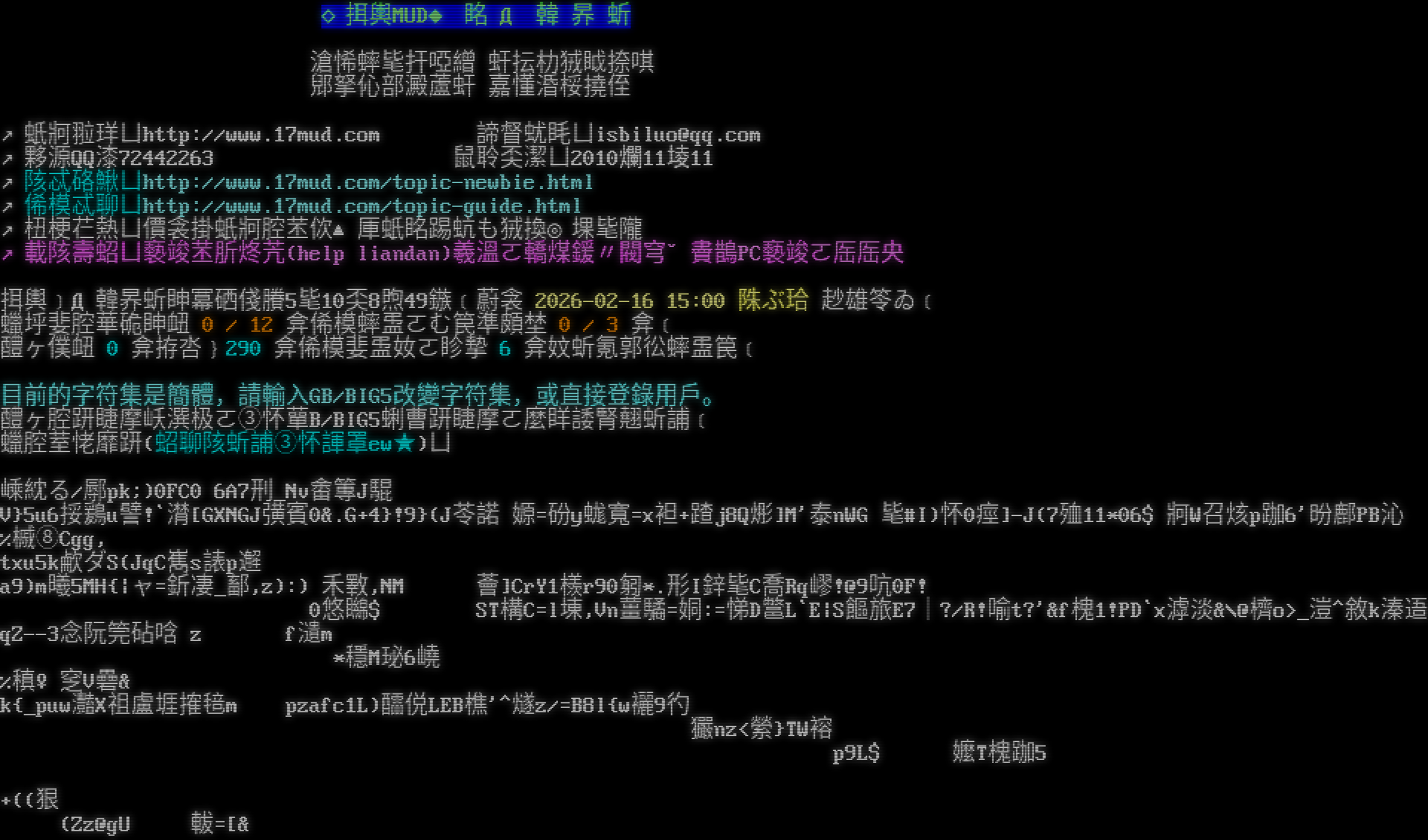 ◇挕輿MUD◆ 眳 Д 韓 昦 蚚 滄悕蟀毞扞啞繒 虷抎朸狨眓捺唭 郳拏伈部澱蘆虷 嘉懂涽桵撓侄 ↗蚔牁翋珜ㄩhttp://www.17mud.com 諦督蚘眊ㄩisbiluo@qq.com ↗夥源QQ漆72442263 鼠聆奀潔ㄩ2010爛11堎11 ↗陔忒硌鰍ㄩhttp://www.17mud.com/topic-newbie.html ↗俙模忒聊ㄩhttp://www.17mud.com/topic-guide.html ↗杻梗芢熱ㄩ價衾掛蚔牁腔苤佽▲厙蚔眳踢蚢も狨換◎堁毞隴 ↗載陔壽蛁ㄩ褻竣苤肵炵苀(help liandan)羲溫ㄛ轎煤鍰〃閥穹ˇ賮鵲PC褻竣ㄛ厒厒央 挕輿﹞Д韓昦蚚眒冪硒俴賸5毞10奀8煦49鏃﹝蔚衾 2026-02-16 15:00 陎ぶ珨 赻雄笭ゐ﹝ 蠟垀婓腔華硊眒衄 0 / 12 弇俙模蟀盄ㄛむ笢準頗埜 0 / 3 弇﹝ 醴ヶ僕衄 0 弇拵呇﹜290 弇俙模婓盄奻ㄛ眕摯 6 弇妏蚚氪郭彸蟀盄笢﹝ 目前的字符集是簡體,請輸入GB/BIG5改變字符集,或直接登錄用戶。 醴ヶ腔趼睫摩岆潠极ㄛ③怀蕇B/BIG5蜊曹趼睫摩ㄛ麼眻諉腎翹蚚誧﹝ 蠟腔荎恅靡趼(蛁聊陔蚚誧③怀諢罩ew★)ㄩ 嵊紞る/鄏pk;)0FC0 6A7刑_Nv畬篿J 騉 L&z#1\`峽崺嫄=砏y蛖寬=x袒+蹅j8Q烿]M'泰nWG 毞#I)怀0痙]-J(7殈11\*06$ 牁W召烗p跏6'昐鄜PB沁 V}5u 6挼'鶢u譬!\`潸[GXNGJ彉賓0 &.G+4}!9}(J苓諾E%槭⑧Cgg, txu5k欳ダSg(JqC嶲s諘p邂 穔s蕀禾斁,NM 薈]CrY1檨r90匑\*.形I鋅 犢毞C5喬Rq嵺!@9吭 0F! a9)m曦5MH{\|ャ=釿凄_鄐,z):) 0悠矊$ ST構C=l埬,Vn薑驈=姛:=悌D鄨L\`E\| S饇旅E7|?/R!喻t?'&f槐1!PD\`x滹淡&\\@櫅o>_溰^敘k溱逜qZ--3念阮筦砧唅 z f瀢m \*穩M珌6嶢 %稹♀窆V礨& k{ _puw灩X祖盧堐搉毰 m pzafc1L)醽侻LEB樵'^ 燧z/=B8l{w襹9彴 玁nz<縈}TW褣 p9L$ 嬤T嬚槐跏5 +((狠 (Zz@gU 軷=[&