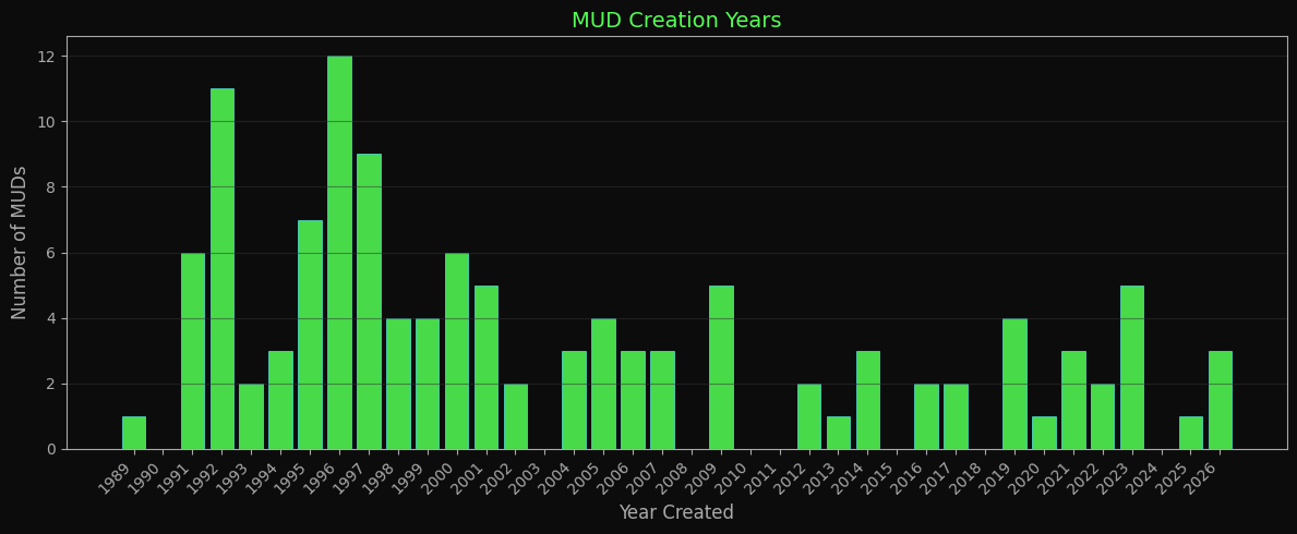 When MUDs were created, by year.
