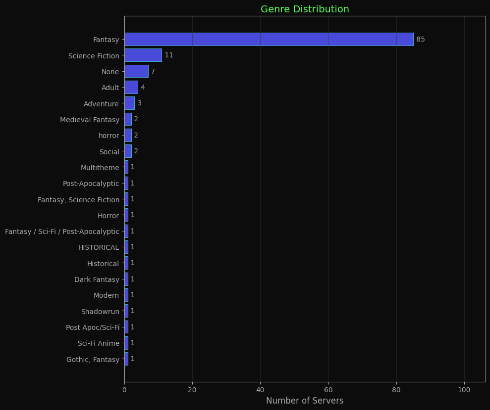 Genre distribution of MUDs reporting MSSP data.