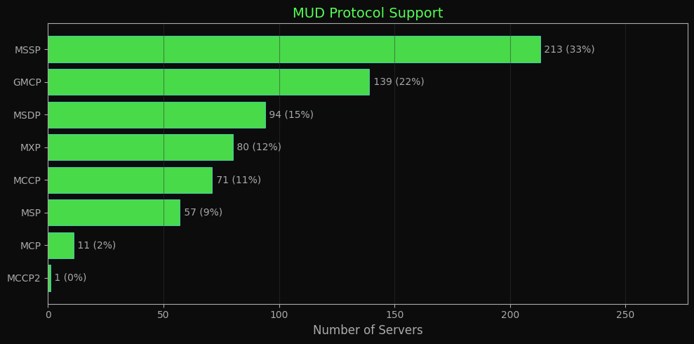 MUD protocol support across all responding servers.