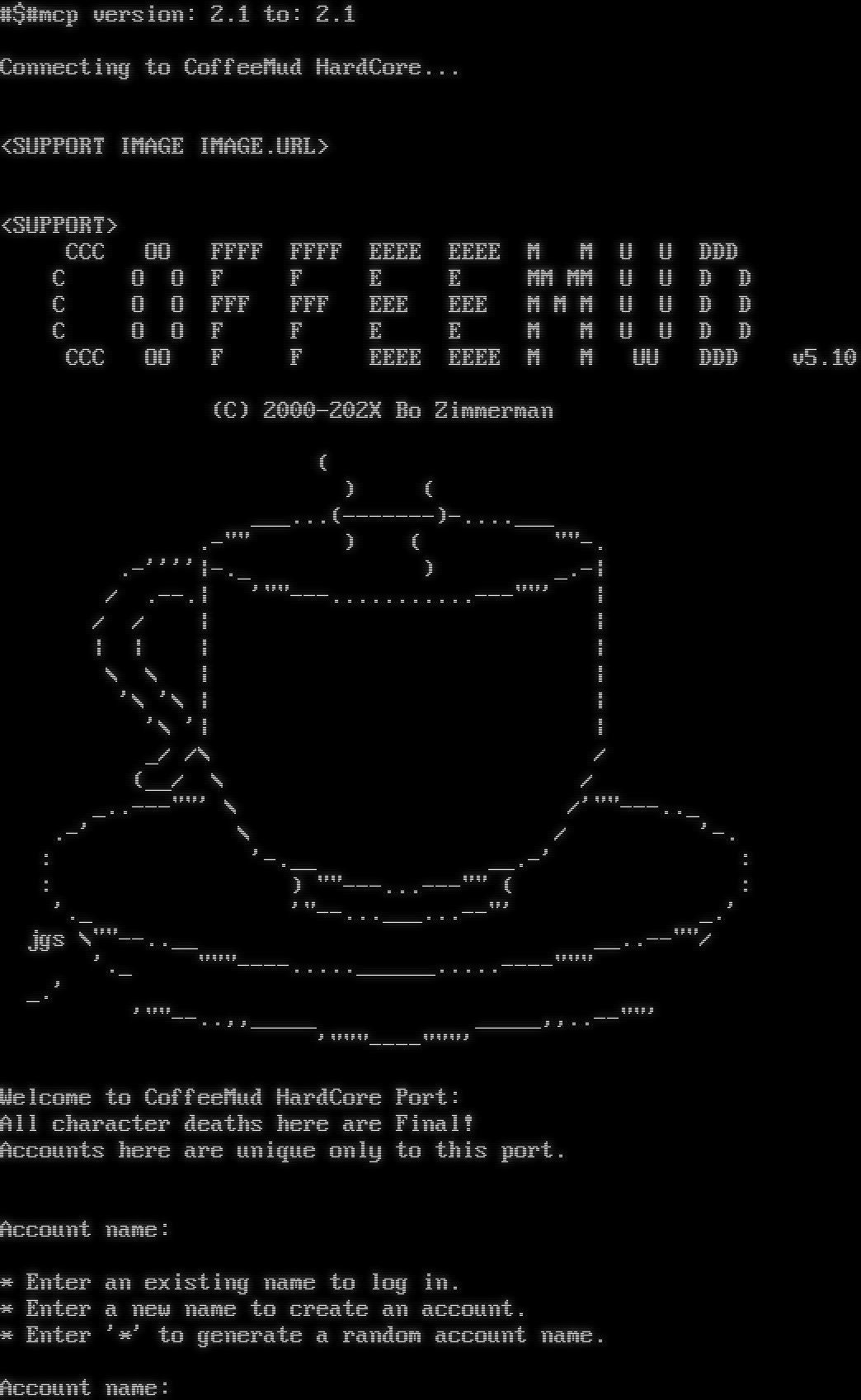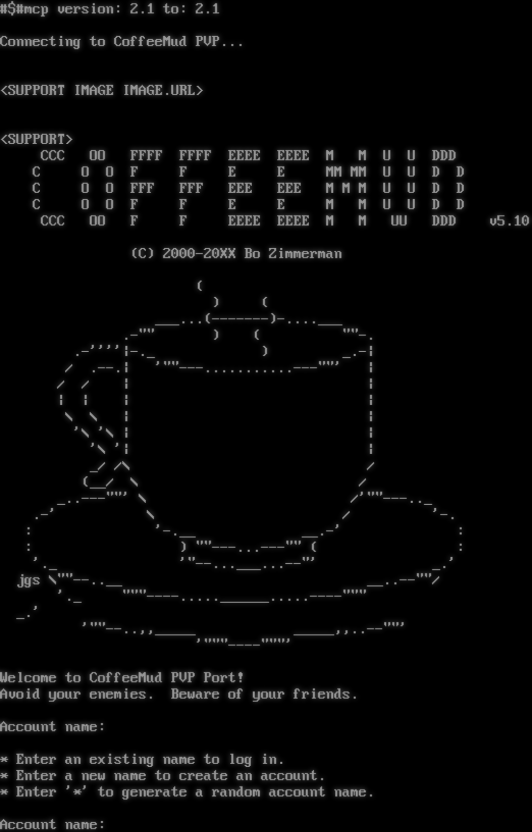 Server offered (accepted): GMCP, MCCP2, MSDP, MSP, MSSP, MXP