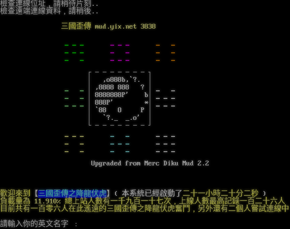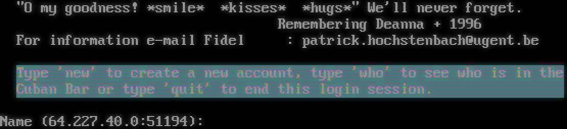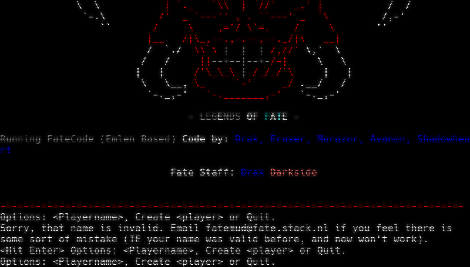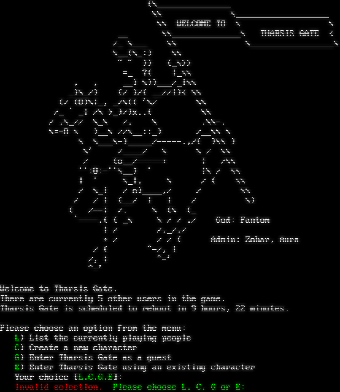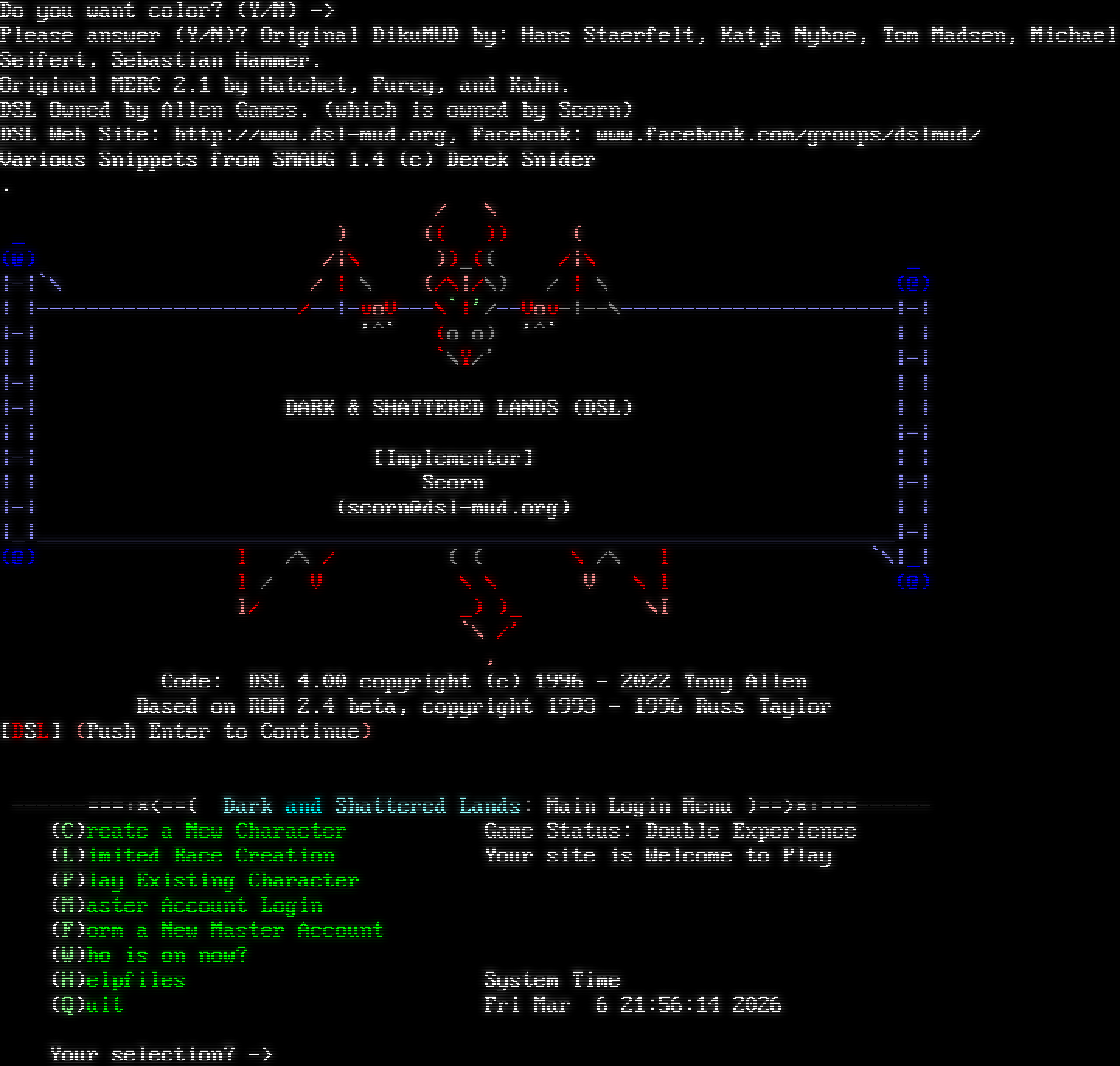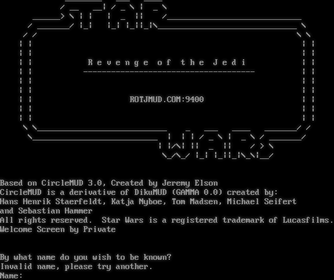 Welcome to NeonMOO, a MUD set in an alternate-history present day North America, in the city of Arnold Island, D.C., capital of the COS. Known for its smoggy air in the Banks and the glittering edifices on the island proper, simply called "Downtown", Arnold Island is, like the COS as a whole, tightly held in the grip of unchecked corporate power, most prominently the Arnold Island Neon Sequestration Company, Inc., and in the grip of unchecked state power, administered by WARD. So where do you fit in? Will you fight your way to the top of the pile to that shining office in the sky? Or will you stalk the streets, preying on the poor and the foolish? Or will you take up arms and bring the fight to WARD, breaking their iron grip on the people? If you do not have a character, you can register one by typing request <address@example.info>; if you do have a character, you can connect using connect <character name> <password>. For more information on the theme of NeonMOO, you can type theme, and to read this message again, type welcome. For any questions regarding the registration or login process, please contact characters@neon-moo.space for help. Due to aggressive handling by several mail providers, please be sure to check your spam folder if it appears the registration mail seems not to arrive. Also check out the NeonMOO discord at https://discord.gg/hzbMHxttpe. #$#LOGIN_TRIGGER Valid commands at this point are COnnect-, Quit, UPtime, Version, WElcome, REQuest, THeme, GET, or MSSP-REQUEST